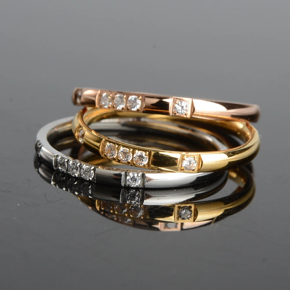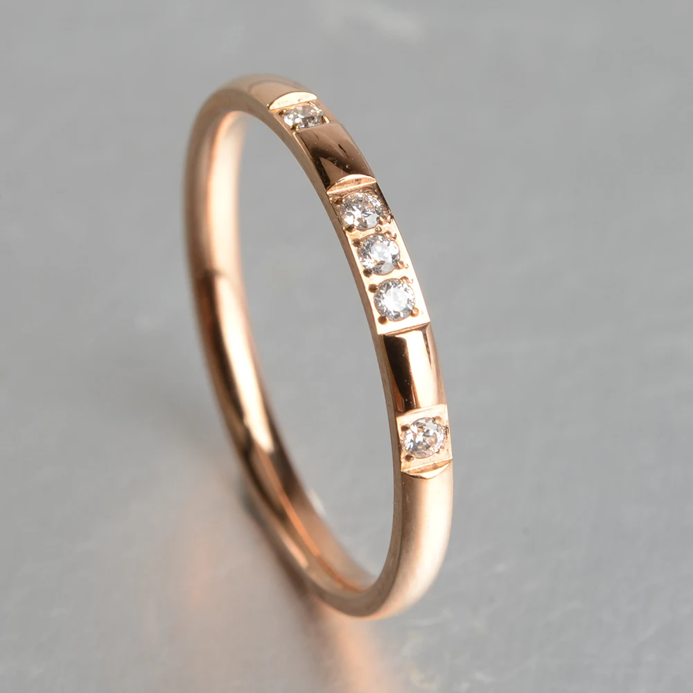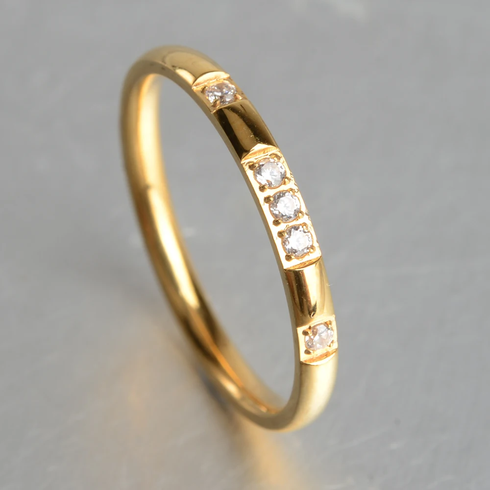 2mm Gold Silver-Color Smooth Wedding Rings With AAAAA Cubic Zirconia For Women 316L Stainless Steel