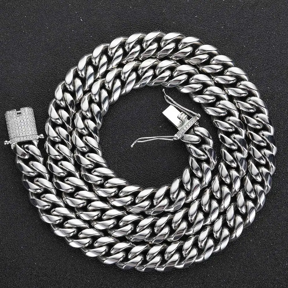 6-16mm Iced Clasp Cuban Link Chain Miami Stainless Steel Necklace Hip Hop Jewelry Gift for Men Women |