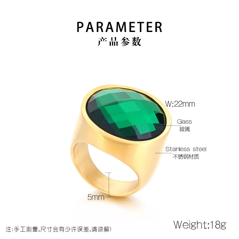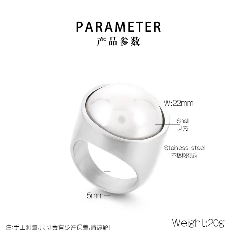 Colorful Glass Shell Pearl Large Rings for Women Men Gold Silver Color Stainless Steel