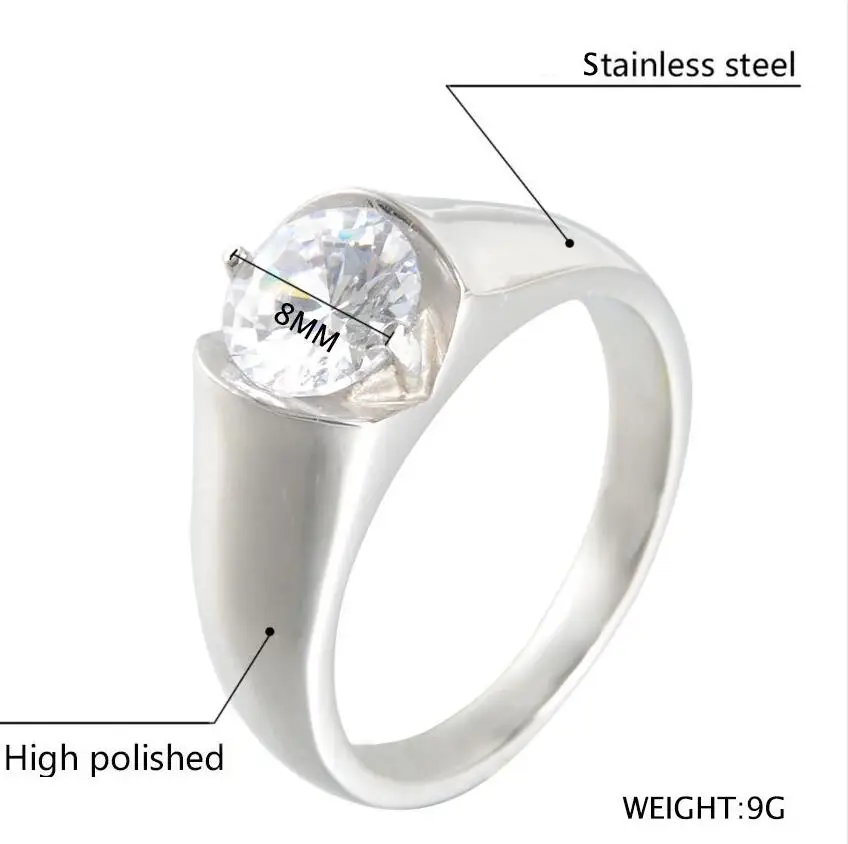 Fashion Accessories Zircon Stainless Steel Men's Ring With Shining CubicZirconia Engagement Wedding Jewelry