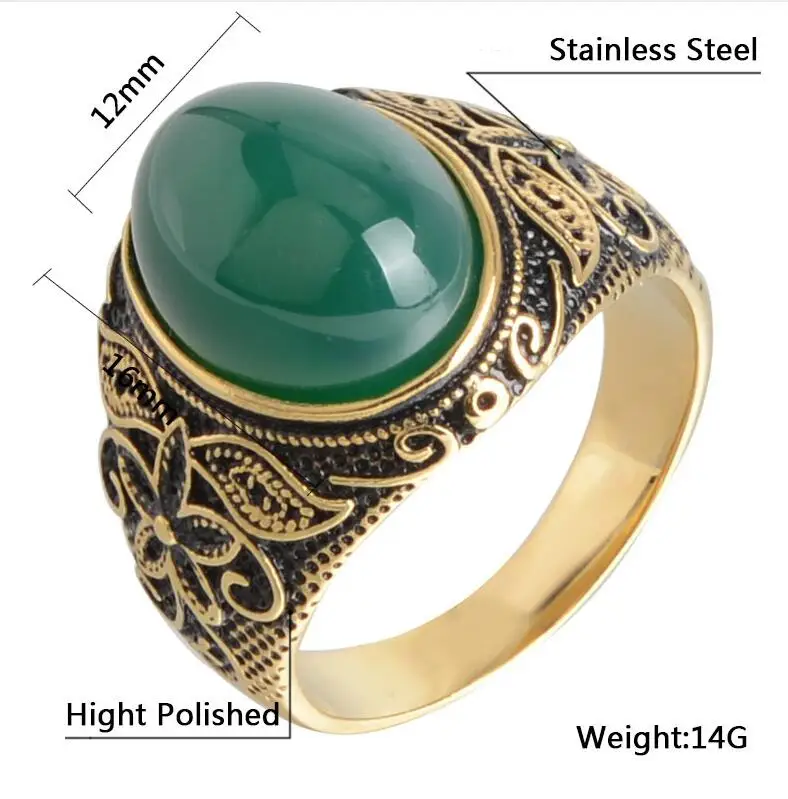 New Natural Blue stone Ring Brief Design Fashion Stainless Steel Punk Vintage Ancient Lapis Lazuli Wedding Engagement Ring
